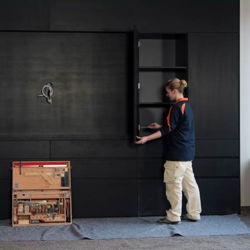 installieren vor Ort Fenster, Türen und andere vorgefertigte Bauelemente. Sie bauen Möbel beim Innenausbau von Läden oder im Caravanbau auf und stellen die Anschlüsse zu Bauteilen, Bauwerken oder Einbauten her.
